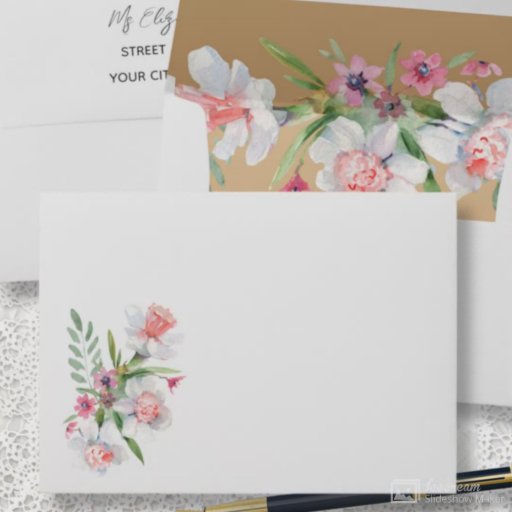 This floral watercolor style thank you card is printed with a cluster of white and pink narcissus flowers and foliage on pale sage color It has a repeating flower cluster on the back with room to write a short handwritten note. All pre-formatted and ready for you to edit with your own text.