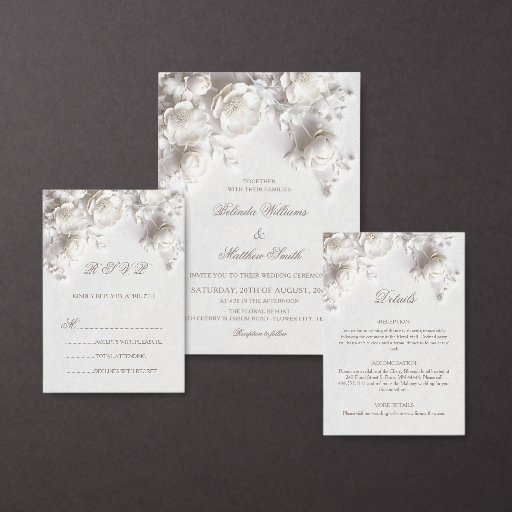 Elevate your wedding stationery with this stunning modern romantic invitation. Featuring high-definition, 3D-effect white roses that appear to lift off the page, this design is paired with sophisticated calligraphic script. The clean, borderless composition makes it a perfect choice for contemporary garden weddings, spring ceremonies, or a chic fine-art aesthetic.
