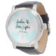white simple minimal text style wedding blue heart 腕時計