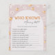 Who Knows Mommy Best Fall Baby Shower Game Card