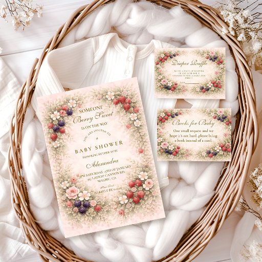 Celebrate a little one on the way with this charming strawberry-themed baby shower invitation. Soft blush tones, delicate florals, and sweet berry accents create a romantic, storybook feel that’s perfect for spring or summer gatherings. Fully customizable text makes it easy to personalize for any baby shower while keeping the design warm, joyful, and timeless.