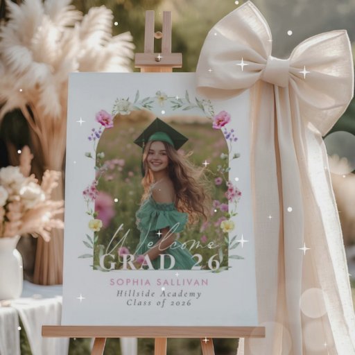Wildflower Bow Graduation party Photo Collage アクリル招待状