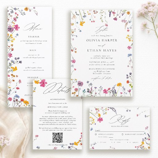 The Wildflower Garden Modern Floral Elegant Wedding Menu is a stylish and sophisticated way to present your wedding meal to guests. Featuring a clean, modern layout accented with delicate watercolor wildflowers, this menu combines elegance with contemporary floral charm.