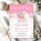 This cute and fun watercolor baby shower diaper raffle features an adorable bear in a pink sleigh surrounded by snow, mountains and pine trees. The text combines handwritten script and sans serif fonts for a stylish and modern look. Beautiful faux glitter flower arrangements and silver confetti add a festive touch. This is perfect for a Christmas or winter baby shower.