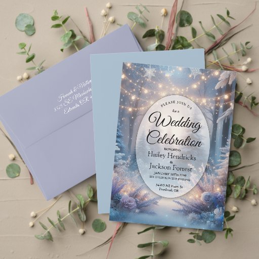 Celebrate your love in a magical winter wonderland with this enchanting wedding invitation design, Winter Florals in Frosted Pines. Featuring frosted pine trees dusted with snow, twinkling fairy lights, and elegant pastel winter florals, this invitation captures the romance of a snowy woodland scene. Perfect for winter weddings, holiday celebrations, or formal evening ceremonies, this design brings together rustic charm and sophisticated elegance. Easily personalize with your wedding details for a keepsake your guests will treasure.