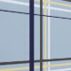 A plaid tartan pattern in calming muted neutral colors. Stripes in yellow, gray, white, and navy blue are arranged on a slate blue-gray background.