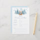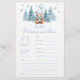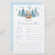 Add a touch of elegance to your winter themed baby boy shower with our sophisticated "Baby predictions and advice" game. Featuring a charming teddy bear wearing cute hat and scarf, holding blue balloon, surrounded by blue pine trees and snowflakes, this delightful activity is perfect for entertaining your guests and creating lasting memories. Ideal for adding fun and excitement to your special celebration!