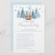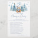 Add a touch of elegance to your winter themed baby boy shower with our sophisticated "Guess who, mommy or daddy" game. Featuring a charming teddy bear wearing winter hat, holding blue balloon and a scarf surrounded by pine strees and snowflakes, this delightful activity is perfect for entertaining your guests and creating lasting memories. Ideal for adding fun and excitement to your special celebration!