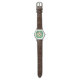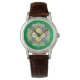 Introducing the Azulejo Radiance Watch! 🌟 Imagine a watch that’s as unique as your personality. The watch face features a stunning azulejo pattern, which is a form of Spanish and Portuguese painted tin-glazed ceramic tilework. This intricate design includes geometric and floral elements in vibrant shades of blue, yellow, green, and white. The outer edge of the watch face is green with white numerals and small red dots marking the hours, making it easy to tell the time at a glance. The watch has a sleek silver case and a stylish brown leather strap, adding a touch of sophistication to the vibrant design. This watch isn’t just a timekeeper; it’s a piece of wearable art that will brighten up any outfit and bring a smile to your face every time you check the time! 🌸🕒