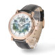 This men's rose gold color vintage watch is shown with a wolf watercolor print.