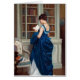 青いガウンを着た女の離れ人が図書館のパーティーを持っている。