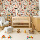 Create the most enchanting nursery feature wall with this woodland fox and bunny watercolour wallpaper. A seamless repeating pattern of sweet fox cubs, soft grey bunnies, wolf pup, penguins, and delicate watercolour florals and leaf sprigs on a warm blush peach background in rust orange, soft grey, and teal — romantic, dreamy, and perfectly gender-neutral. Perfect for nursery walls, boho kids' bedrooms, playrooms, and reading rooms. A storybook wall transformation for any woodland nursery.