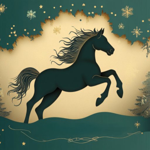 Elegant green-and-gold woodland invitation featuring a rearing horse. Inside text is fully editable—add event name, date, time, venue, and RSVP. Perfect for New Year 2026, Lunar New Year (Year of the Horse), or any winter celebration. Premium look, easy personalization.