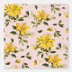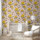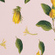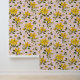 Pale pink wallpaper with seamless yellow flowers pattern. Medicinal St. John's Wort flowers and leaves cover paper in a big, repeating pattern. Brighten any room of the house, including a nursery.