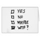 単語、"Yes"、"いいえ"、"多分"、および"WTFか"。 チェック・ボックス次のoを使ってそれら。 単語は白い背景のブラックマジックのマーカーで書かれます。 素晴らしいギフトを作ります!