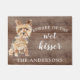 ウェットおもしろいキッサーに気を付けろ」素朴な背景に設定されたヨークシャー・テリア犬のドアマフェイクット。私たちの店を訪問し、犬のパンの大規模な品揃えを見る