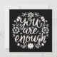 You are enough self love quotes mental health affirmation reminder black flowers floral aesthetic gift living room bedroom home decor small print card.
