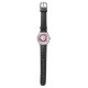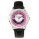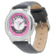 ピンクの詳細とワイルドゼブラ印刷かわいらし体操腕時計。体操選手のシルエットは円の中にポーズを取り、コントラストの「ポルカドット」のバナーがある。注文する前に自分の名前を追加!また、その他のオプションにカスタマイズは「it」ボタンを使用して違うフォント!©gollygirls.com